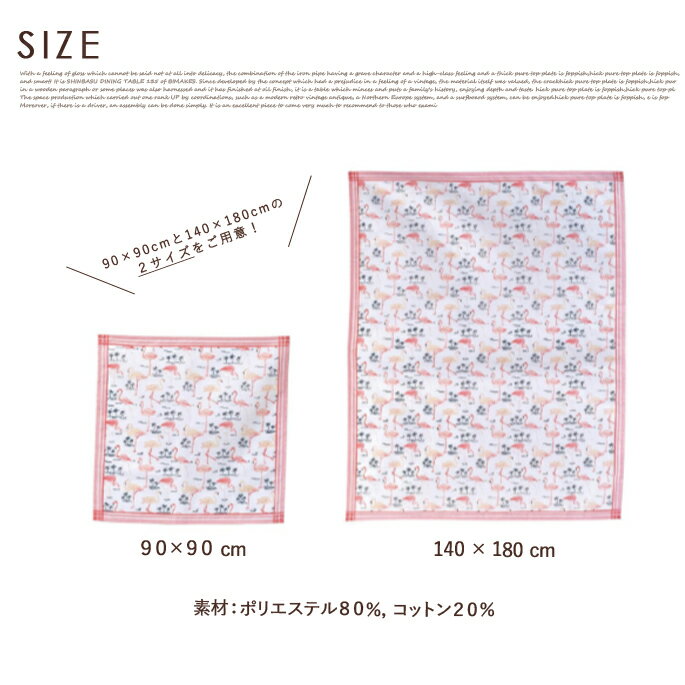 大きさは90×90cmと140×180cmの2サイズでテーブルやピクニックシートの上に敷いて使ったり、ふろしきとして果物やボトルを包んで使うことも出来ます。